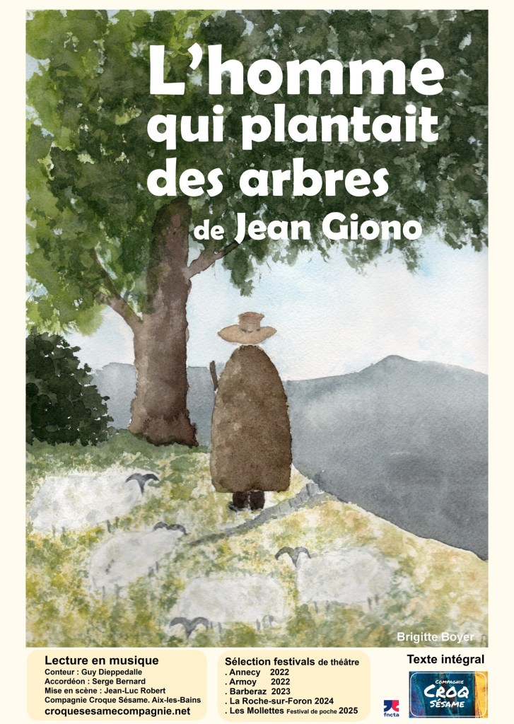 La compagnie Croq Sésame présente actuellement, en théâtre à domicile, en salle ou en extérieur, « L’homme qui plantait des arbres« , de Jean Giono.